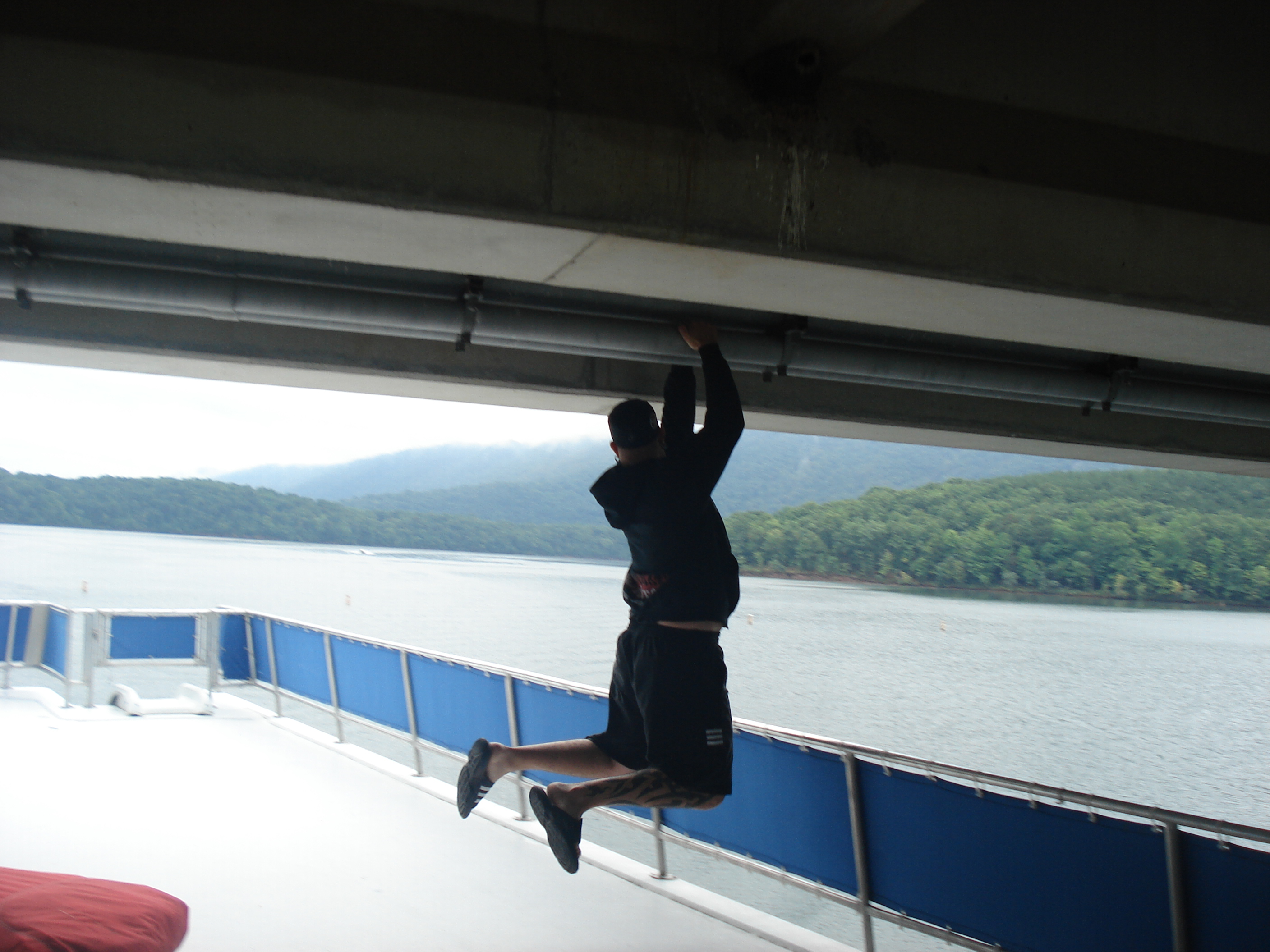 Hanging from the bridge